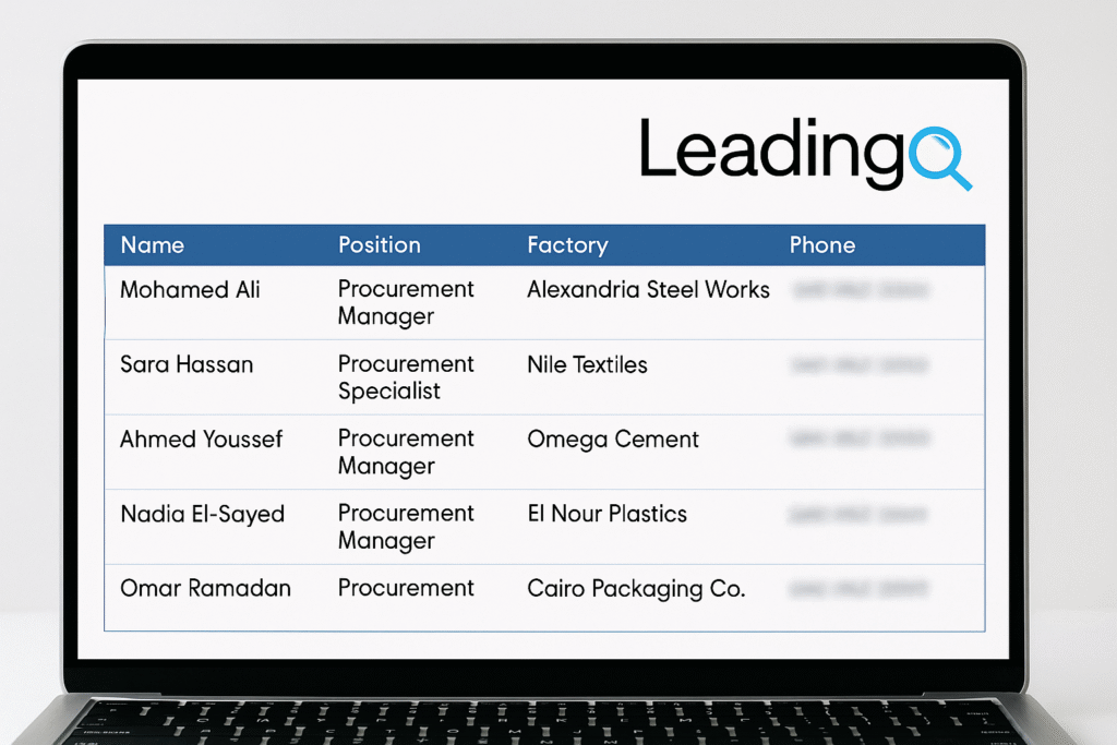 ليدنجو بتوفرلك قاعدة بيانات ضخمة تضم مئات الشركات والمصانع المُوثّقة في جميع أنحاء مصر — مصنفة بدقة حسب النشاط والموقع. ده بيسهّل عليك توسيع شبكة علاقاتك والوصول لعملاء جدد فعليًا مهتمين بالخدمات أو المنتجات اللي بتقدمها.